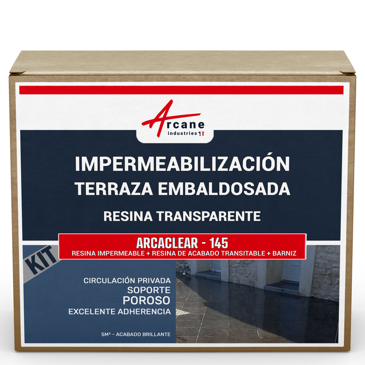 El Kit Arcaclear es un Sistema de Impermeabilización Líquida (SIL) multicapa incoloro (imprimación + resina impermeabilizante + acabados) de alta tecnología, de calidad profesional referenciado en nuestra gama Producto impermeabilizante para terrazas Maison Etanche. Este kit está compuesto por los siguientes elementos: