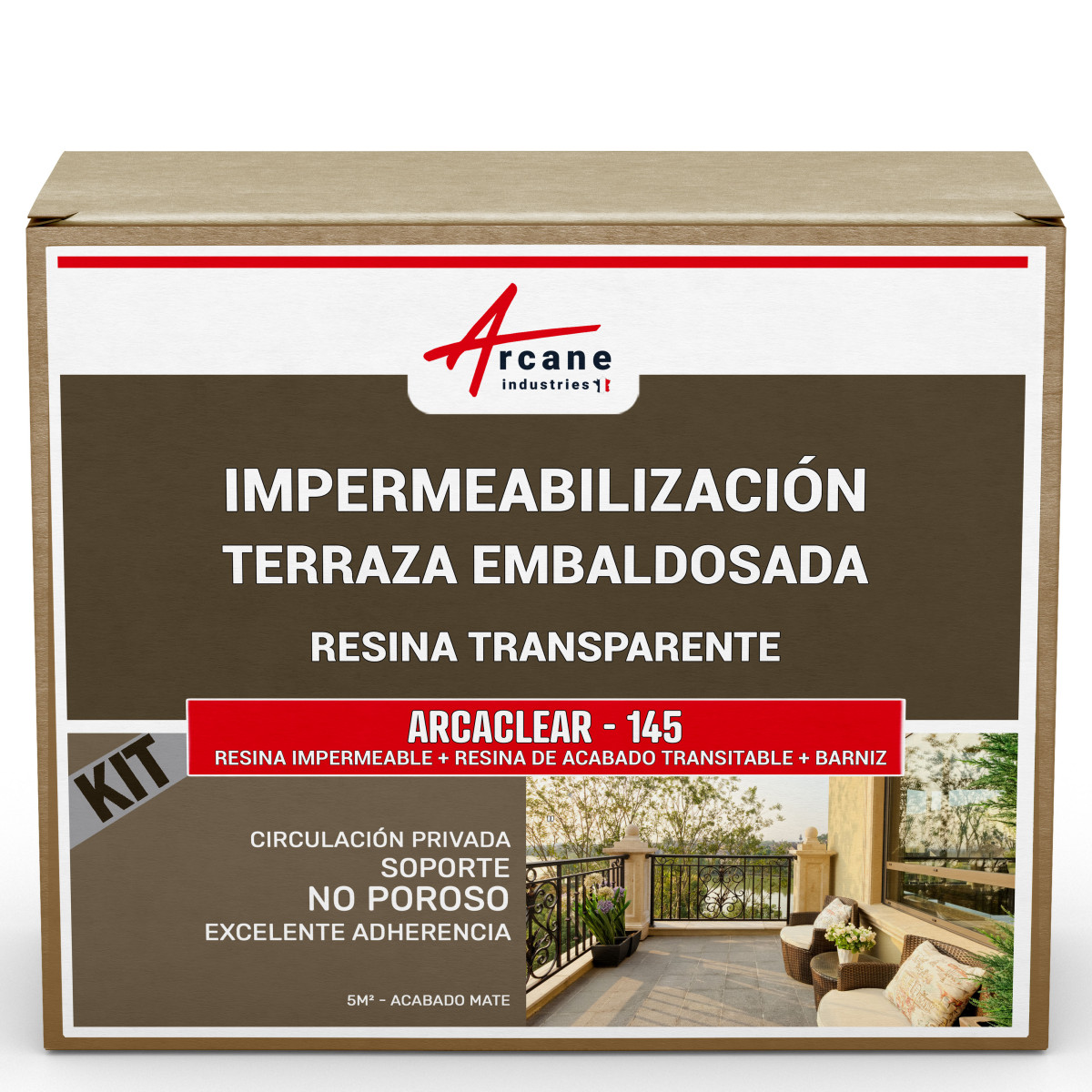El Kit Arcaclear es un Sistema Natural de Impermeabilización Líquida (SEL) multicapa (primario + resina impermeabilizante + acabados) de alta tecnología, de calidad profesional referenciado en nuestra gama Producto impermeabilizante terraza Maison Etanche. Este kit está compuesto por los siguientes elementos:
