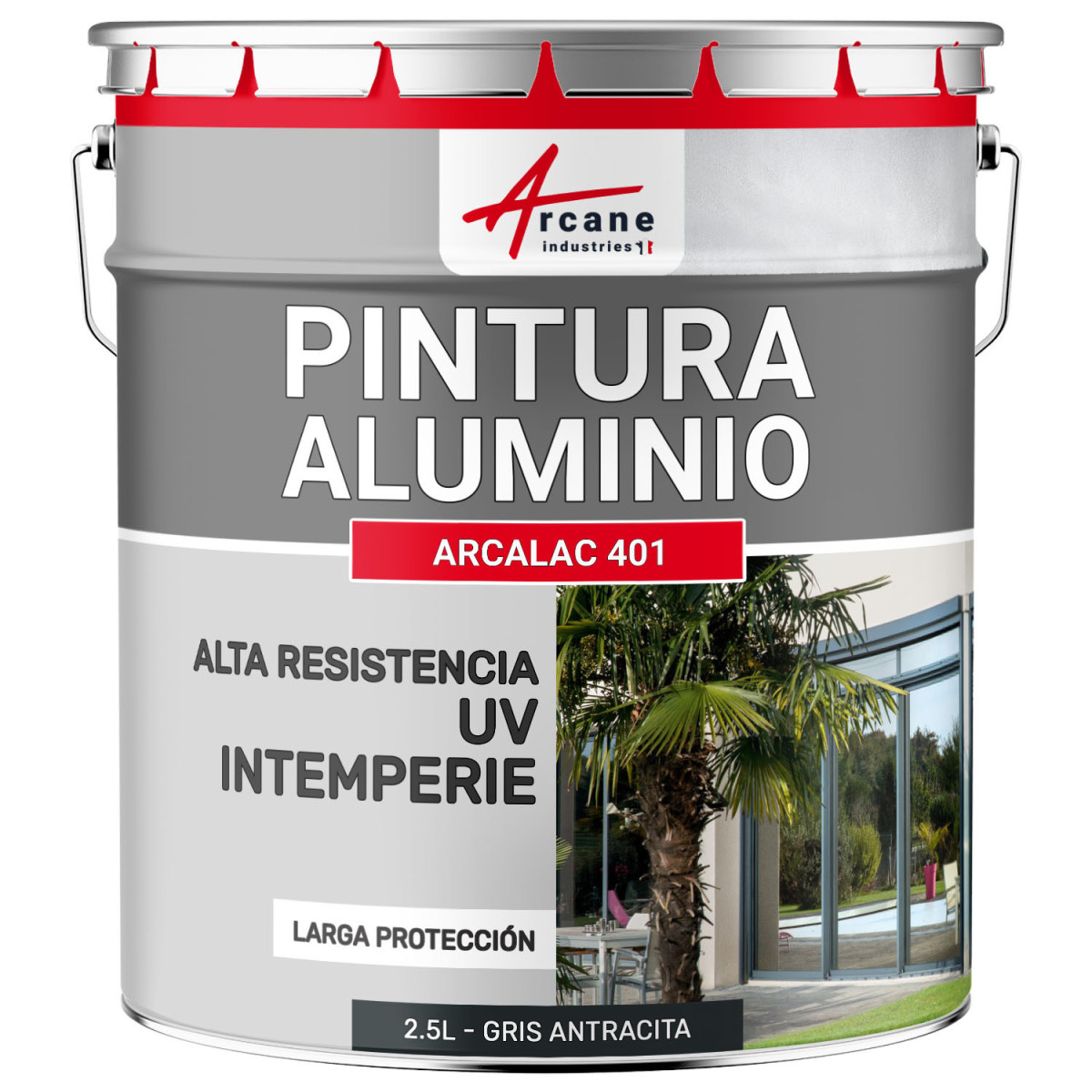 ARCALAC 401 es una pintura para exterior e interior que se aplica en todo tipo de superficies de aluminio.