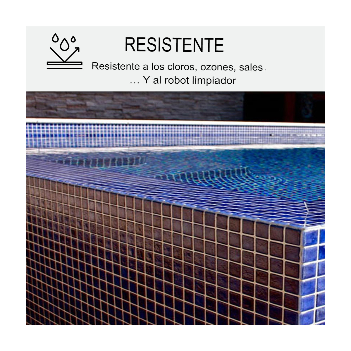 - Resistente a los Tratamientos de Aguas de Piscina (cloro, ozono, sales...),