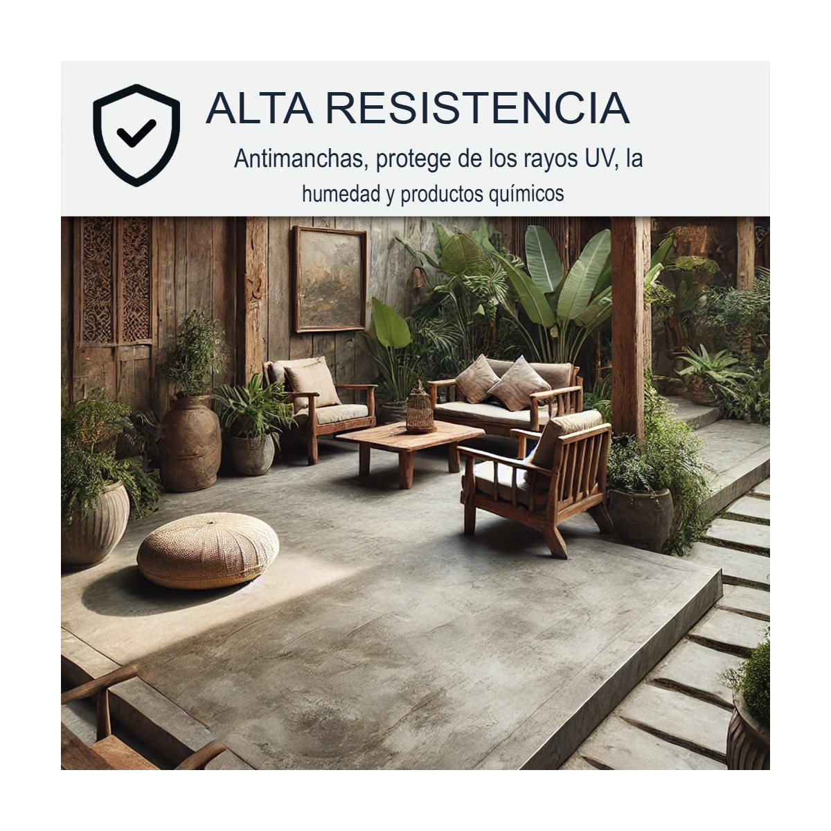 - Mantenimiento simplificado: impermeabiliza el hormigón y facilita la limpieza diaria.