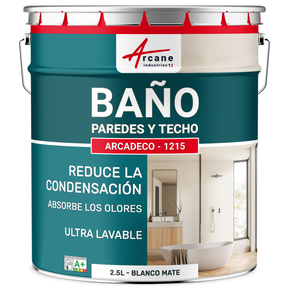 Nuestra pintura anticondensación protege sus superficies, prolongando su vida útil y manteniendo el aspecto nuevo de su cuarto de baño. Al prevenir la formación de condensación, nuestra pintura anticondensación ayuda a eliminar los olores desagradables que pueden desarrollarse en ambientes húmedos. Disfrute de un espacio fresco y limpio en todo momento. ARCADECO - 1215 ofrece un elegante acabado mate que se adapta a todos los estilos de decoración de estancias húmedas. Hay disponibles varios colores, desde el blanco clásico hasta tonos más contemporáneos como el beige.