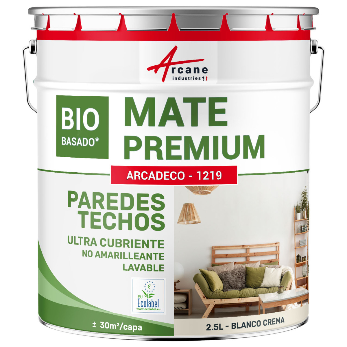 ARCADECO - 1219 es una pintura para interiores diseñada para combinar estética, rendimiento y elección de compra responsable. Ofrece una cobertura uniforme, una excelente resistencia, al tiempo que garantiza un interior más saludable gracias a su baja emisión de COV.