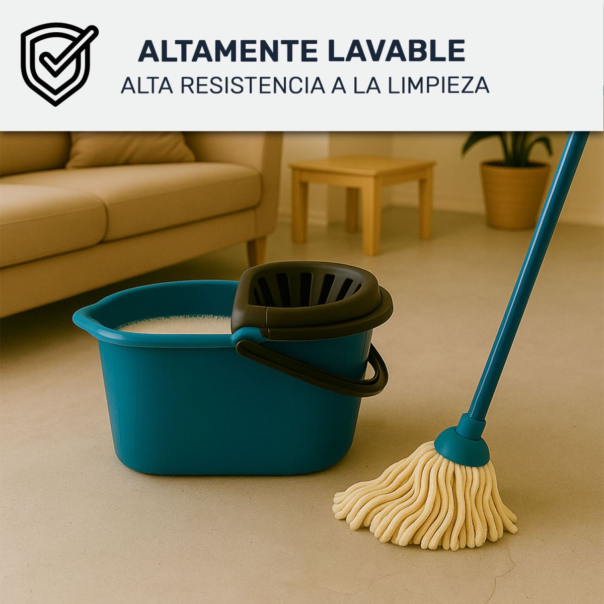 Limpieza con fregona húmeda con un detergente de pH neutro. Evitar productos agresivos o abrasivos.