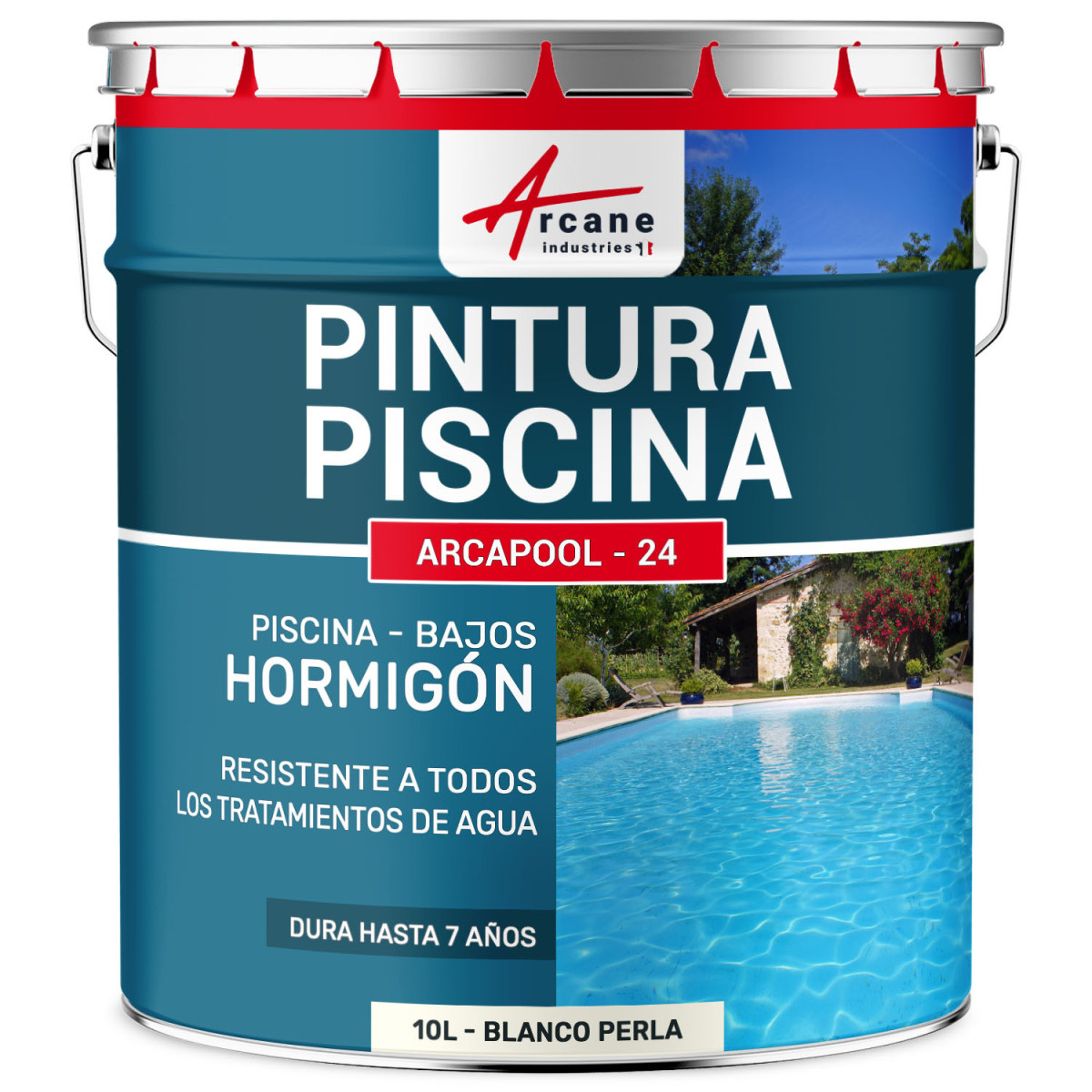 Arcapool - 24 es una pintura hidrófuga a base de copolímeros acrílicos en disolventes. Impermeabiliza su soporte. Pintura con disolventes para piscinas y estanques de hormigón, renueva la estética de su piscina. ¡Una pintura al mejor precio, ideal para todos los trabajos de renovación a bajo costo!