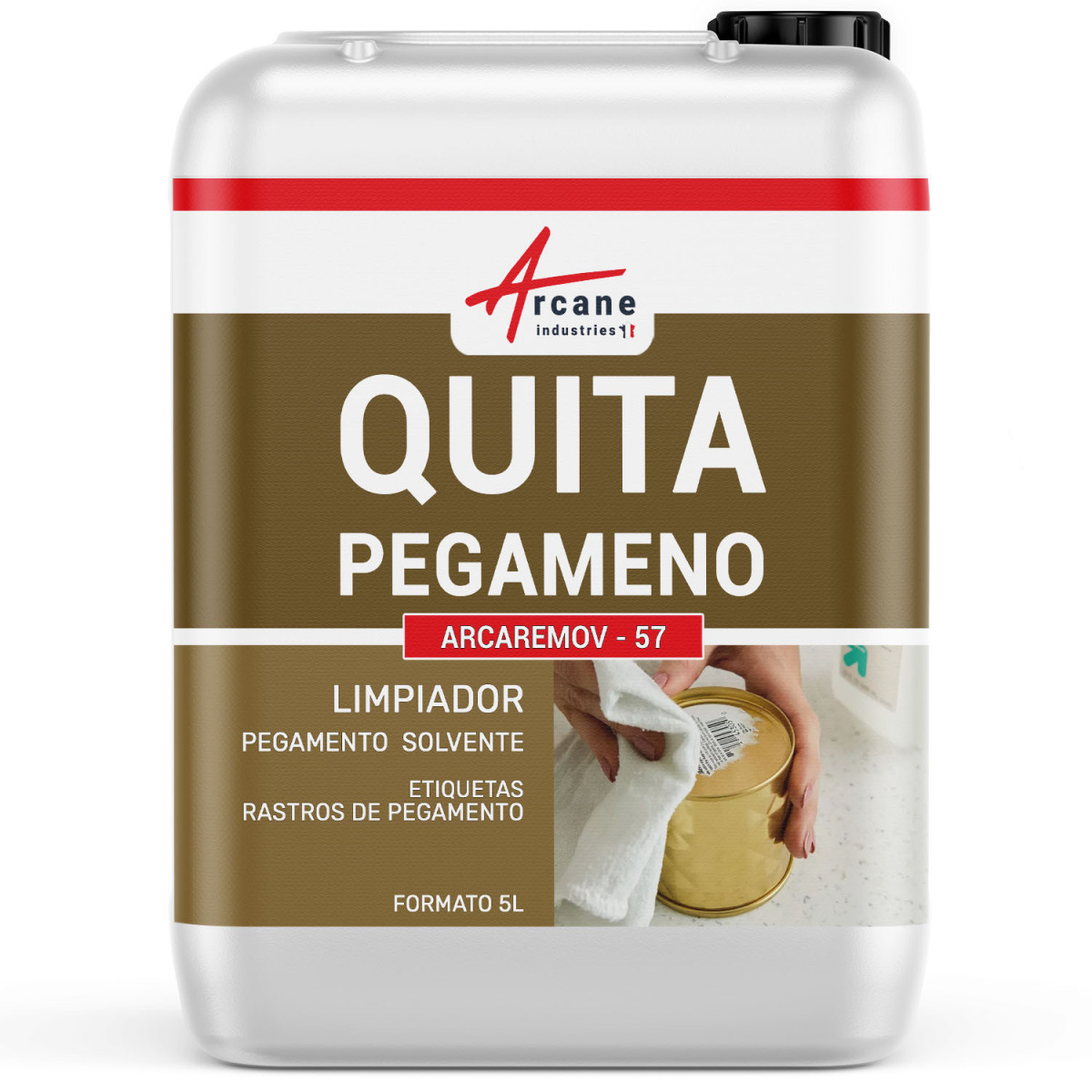 ARCAREMOV - 57 es un disolvente de pegamento - permite eliminar el pegamento o sus residuos, las masillas y otras resinas en todo tipo de superficies. El ARCAREMOV - 57 / etiquetas elimina todo tipo de pegamento (excepto cianoacrilato) y residuos de etiquetas. Ideal para asegurar un buen acabado en todos los trabajos de pegado y el uso de masillas.