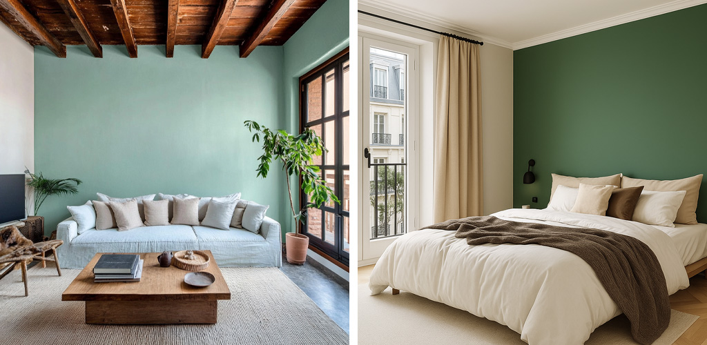 Le choix dépend de l’ambiance recherchée et de l’exposition. Les verts profonds (sapin, forêt) créent une atmosphère chaleureuse, idéale en salon ou bibliothèque, tandis que les verts clairs (sauge, menthe) apportent une sensation de fraîcheur et ouvrent la pièce à la lumière.