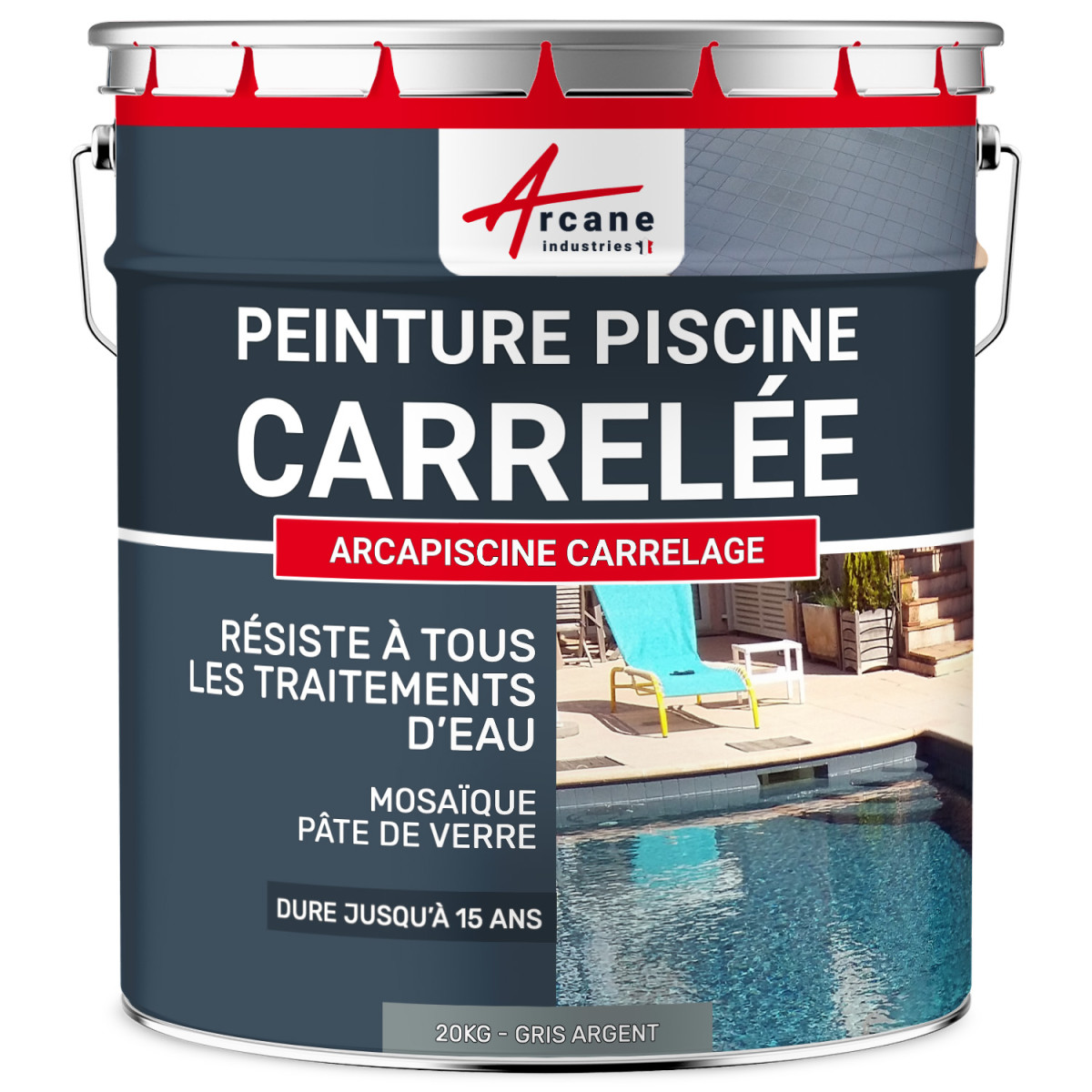 Arcapiscine carrelage est une peinture piscine d'imperméabilisation et décoration mono-composante polyuréthane, aliphatique, qui ne jaunit pas, ne farine pas et forme un revêtement filmogène de protection.