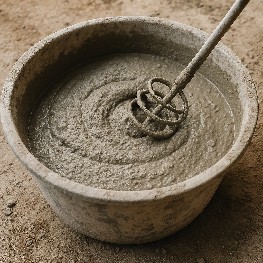 Pour les montages, un dosage de 1 volume de ciment pour 3 à 4 volumes de sable assure un bon compromis entre solidité et facilité d’application. Pour un enduit, un dosage plus riche en sable (1 volume de ciment pour 4 à 5 volumes de sable) est préférable pour plus de souplesse. L’eau s’ajoute progressivement jusqu’à obtenir une consistance ferme et homogène, ni trop sèche ni trop fluide, afin de faciliter le travail et d’assurer un bon séchage.