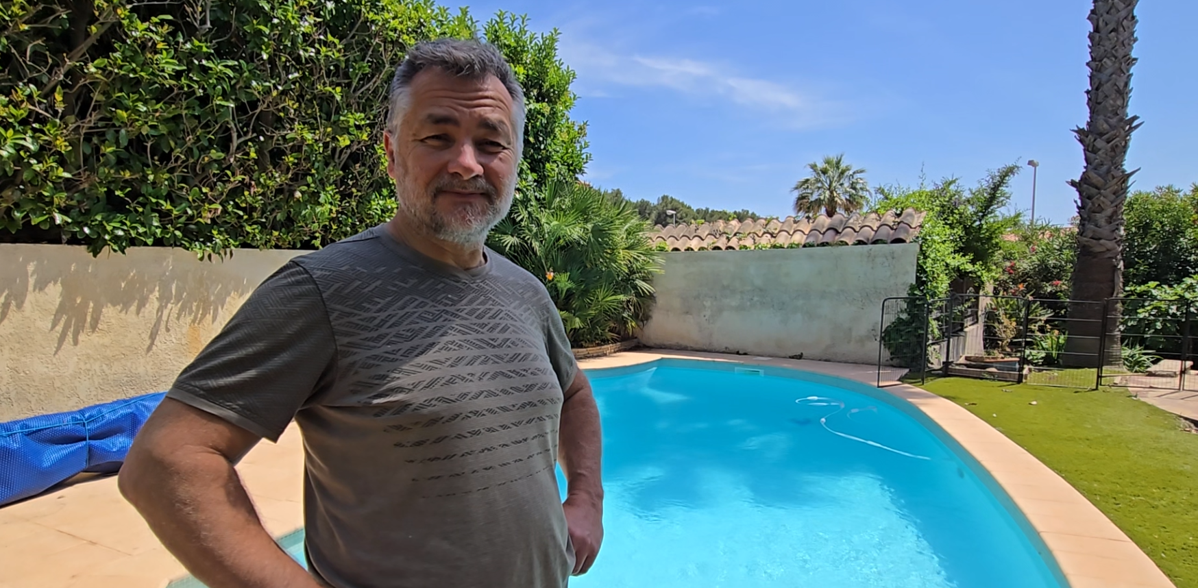 En 2018, lorsqu’il achète sa maison à Pia dans les Pyrénées orientales, Denis hérite d’une piscine béton déjà peinte avec notre peinture piscine béton Arcapiscine.