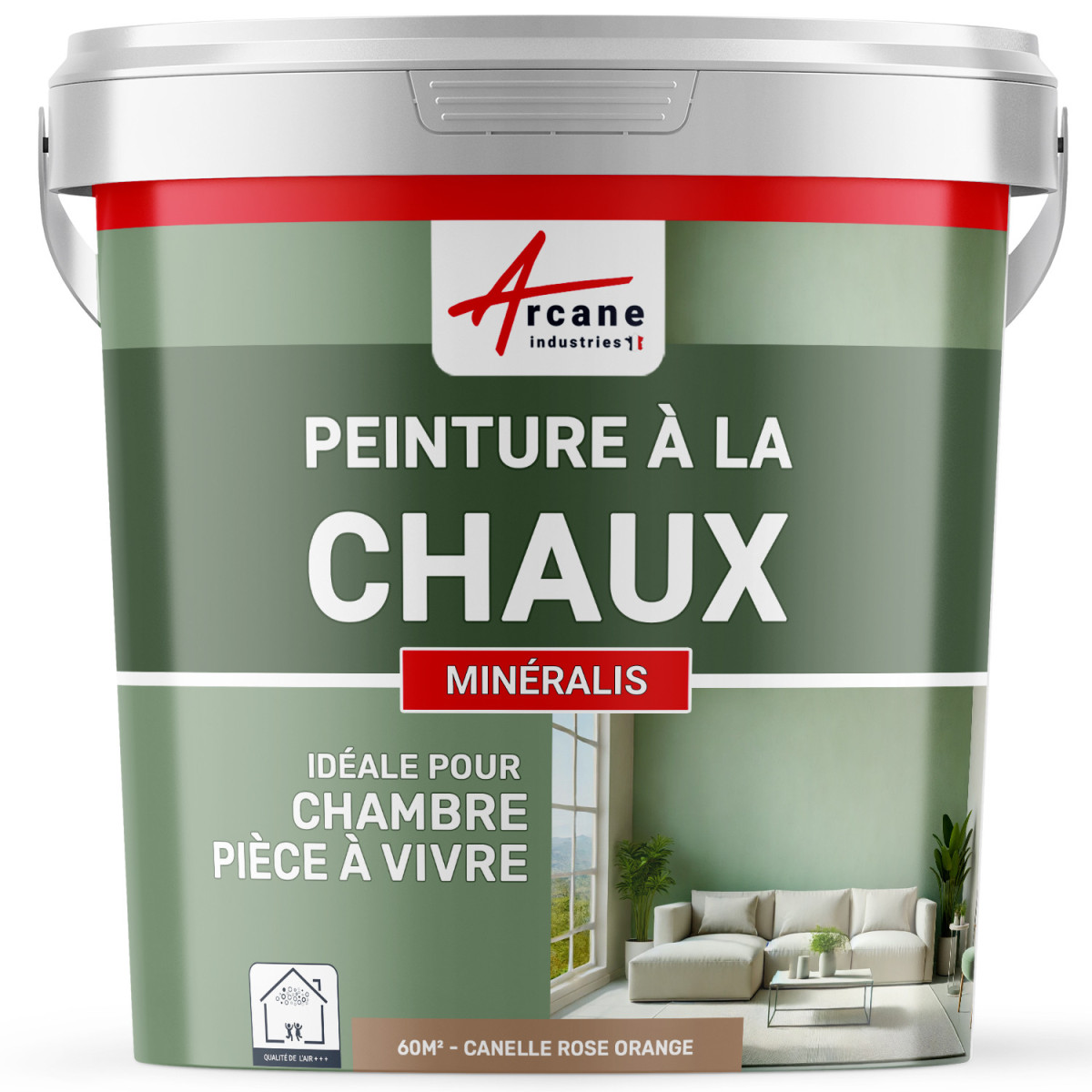 Peinture à la chaux sans émanation A+ - peinture décorative intérieure disponible dans de nombreuses couleurs - applicable sur tout support - peinture pour chambre d'enfants, salon, pièce à vivre.