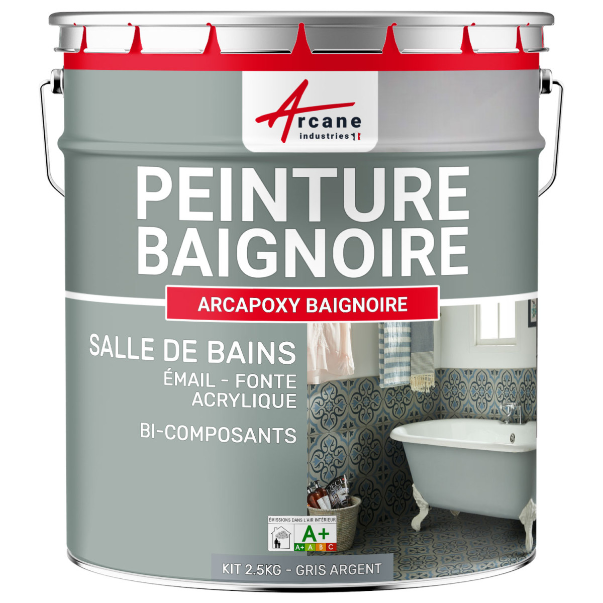 PEINTURE BAIGNOIRE - Résine rénovation baignoire lavabo émail salle de bain-Kit2-5Kg-RAL-7001-Gris-Argent-Aspect / Couleur