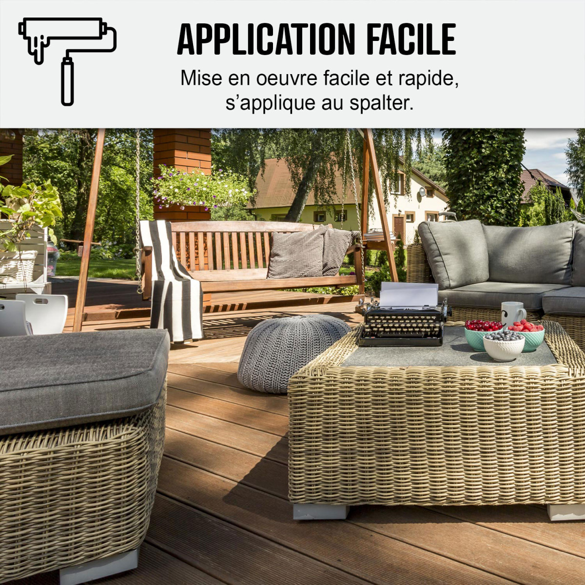 - Facile d'application (au pinceau, à la brosse, au rouleau)