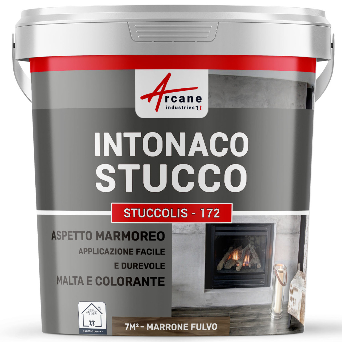 STUCCOLIS è un intonaco decorativo, colorato in pasta (12 colori). Si ottiene mescolando una polvere biancastra (calce, polvere di marmo e additivi speciali), un volume d'acqua e una dose di colorante liquido. La sua formulazione permette una grande facilità di applicazione su una moltitudine di superfici.