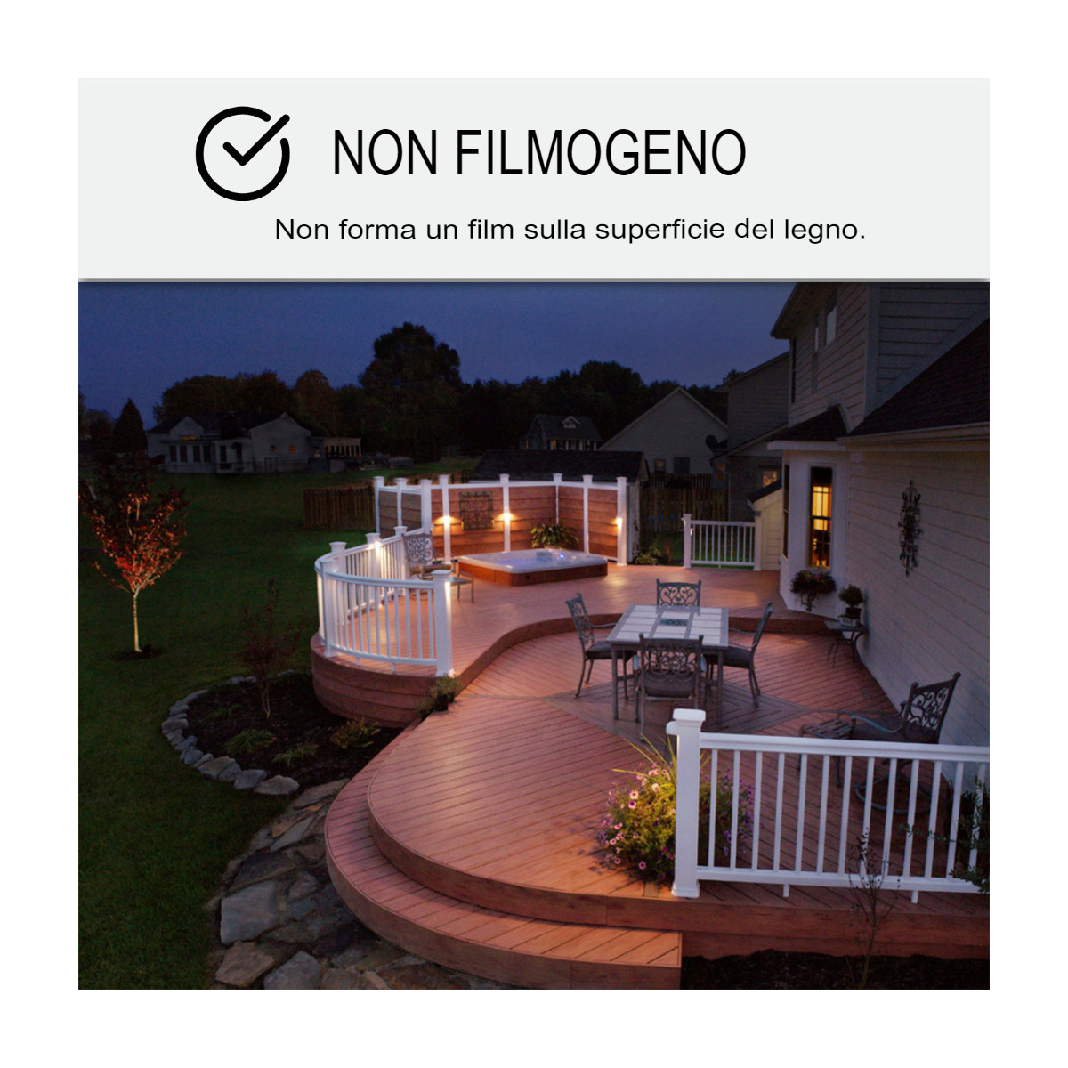 La versione "Incolore (senza pigmenti)" non contiene pigmenti e protegge meno dai raggi UV rispetto alle versioni colorate. La manutenzione da fornire può essere più frequente. Questa versione è adatta per terrazze sotto riparo. Per superfici molto soleggiate e molto esposte alle intemperie, si consiglia di scegliere una versione colorata. Se l'ingrigimento è un problema, bisogna optare per la tinta quercia dorata che è la più neutra visivamente.