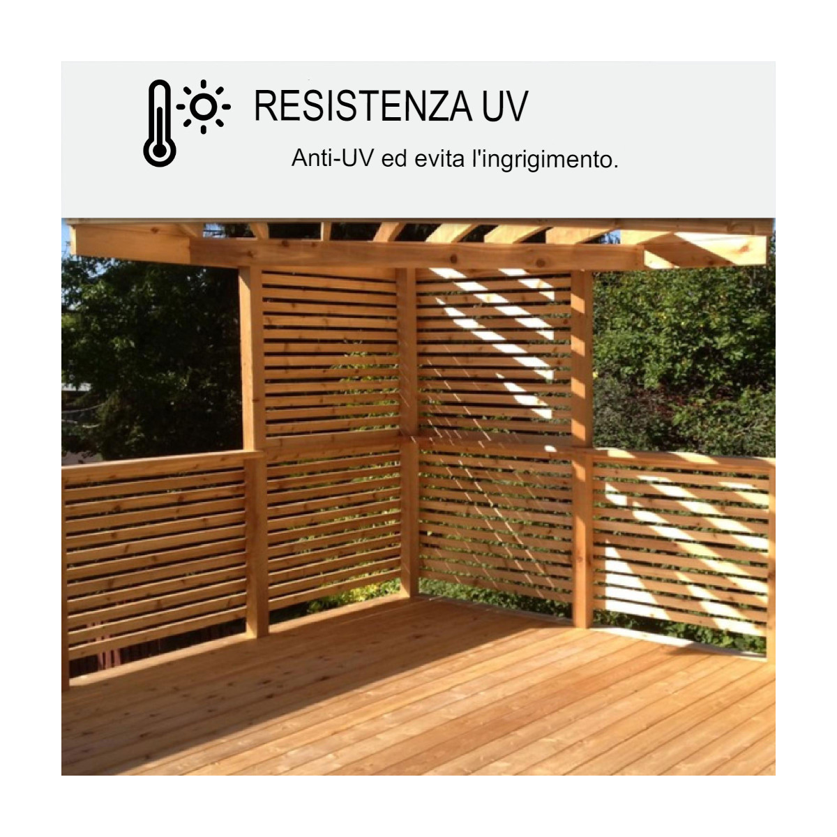 Il legno per esterni è sottoposto a forti sollecitazioni: radiazioni UV, intemperie, variazioni di temperatura. Senza un trattamento adeguato, può fessurarsi, deformarsi e ingrigire rapidamente.