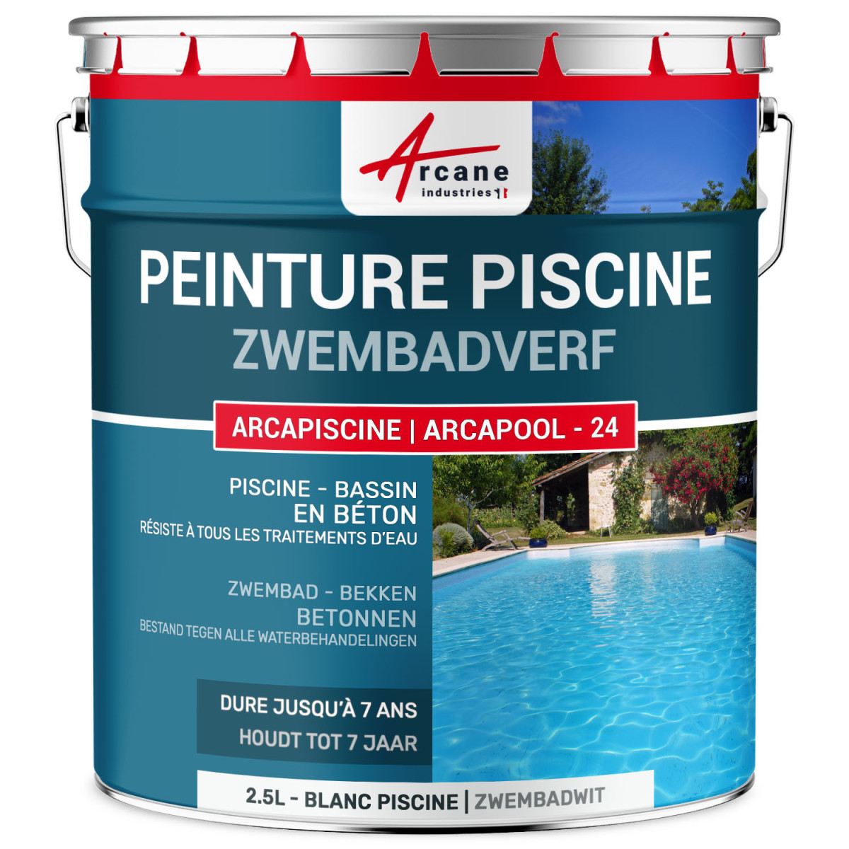 - Deze verf is geen waterdichte oplossing: als uw zwembad of bassin een waterdichtings- of waterverliesprobeem heeft, moet vóór het aanbrengen van Arcapiscine-verf een waterdichte coating worden aangebracht. Neem contact met ons op.