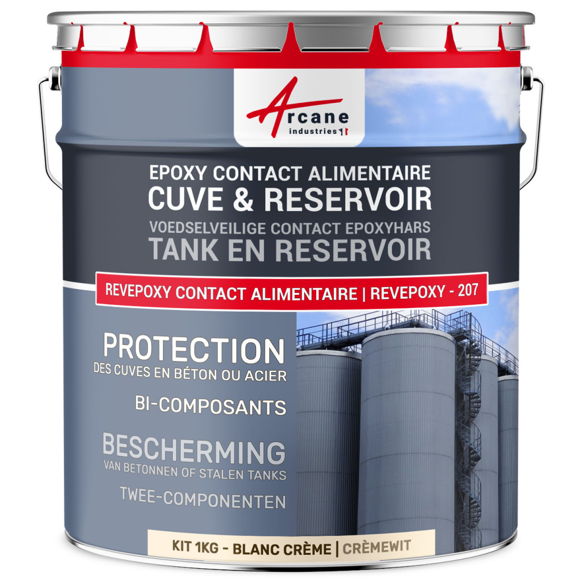 REVEPOXY - 207 is een epoxy harsverf twee-componenten voor de bescherming en waterdichting van betonnen of stalen tanks die voedingsmiddelen bevatten zoals vruchtensap, meel, granen. Verf voor levensmiddelencontact met voedingsmiddelen zoals: Meel, Suikers, Fruit en Groenten...