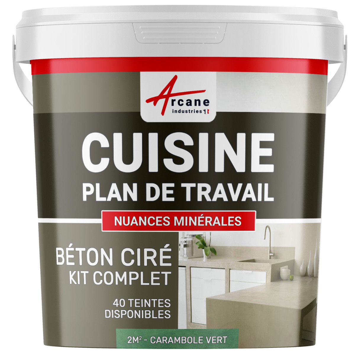 De Beton Cire Werkblad en Keuken kit is een decoratieve mortelkit, door en door gekleurd, geformuleerd voor de oppervlakken van uw keuken: werkblad, spatwand, muur en vloer. Ideaal voor creatie of renovatie, bestand tegen alle soorten vlekken en mechanische belastingen.