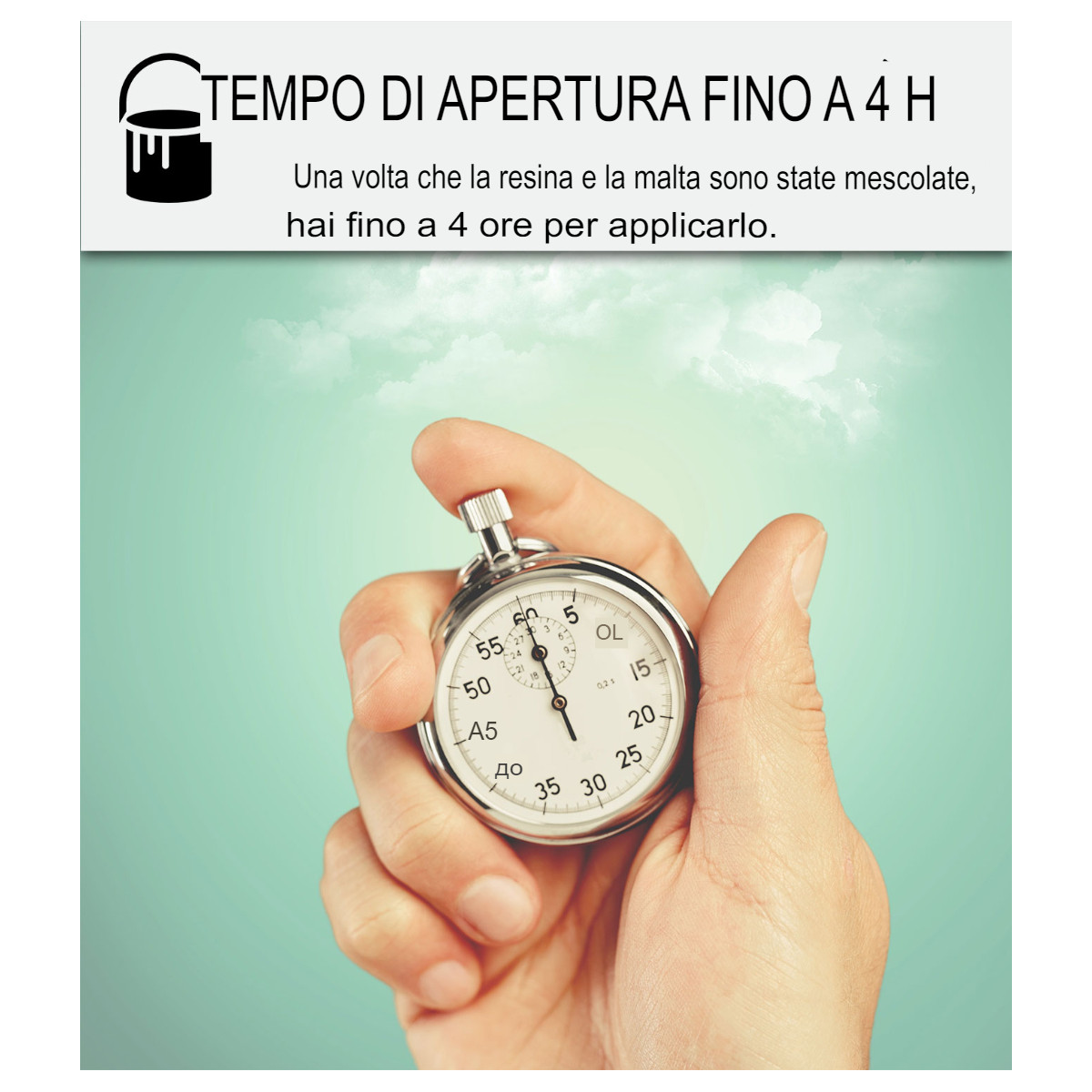 Open tijd van het mengsel (tijd om toe te passen): 4 uur. Bereid alleen het mengsel voor de eerste laag voor.