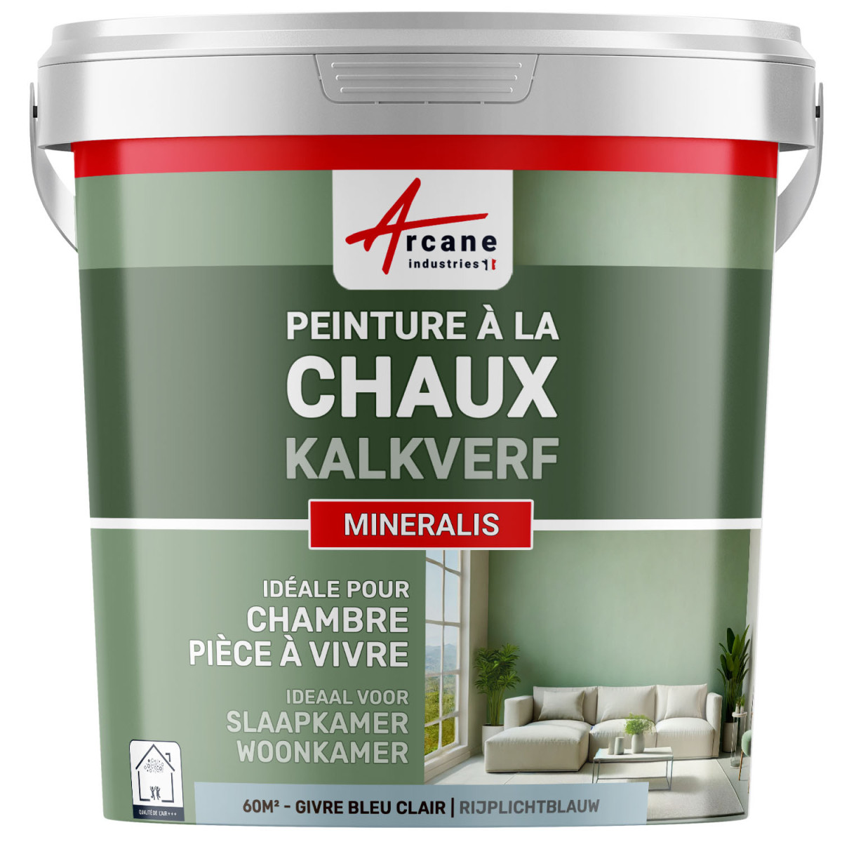 De Blauwe Natuurlijke Kalkverf voor Binnen - MINERALIS is een minerale verf op basis van luchtkalk, ontworpen om een authentieke en natuurlijke afwerking te bieden. De minerale pigmenten geven het een unieke diepte en intensiteit, die evolueert afhankelijk van het licht. Deze blauwe tint, zacht of diep afhankelijk van de gekozen variant, brengt een gevoel van frisheid en zuiverheid dat ruimtes visueel vergroot en een ontspannen sfeer bevordert.
