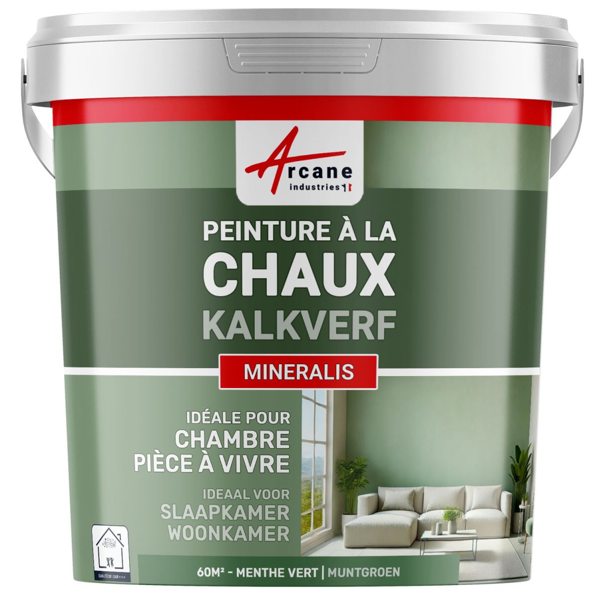 De Groene Kalkverf voor Binnen op Natuurlijke Basis - MINERALIS is een minerale verf op basis van luchtkalk, ontworpen om een authentiek en getextureerd resultaat te bieden. Dankzij de minerale pigmenten creëert het een subtiele diepte die evolueert met het licht.