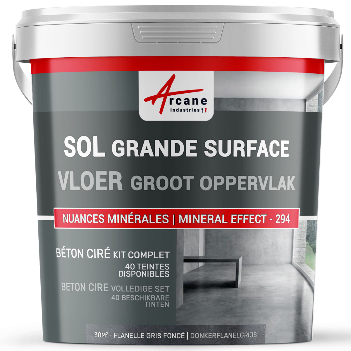 Voor uw vloeren groter dan 30 m² hebben wij grote oppervlakte gepolijst beton kits ontwikkeld. Ze worden u aangeboden in kits van 30m², 60 m² en 120 m² en bevatten alle producten die nodig zijn voor het aanbrengen van gepolijst beton op uw betonnen vloer. Of het nu in nieuwbouw of renovatie is, gepolijst beton maakt het mogelijk om grote oppervlakken zonder voegen te realiseren en zo uw ruimte visueel te vergroten.