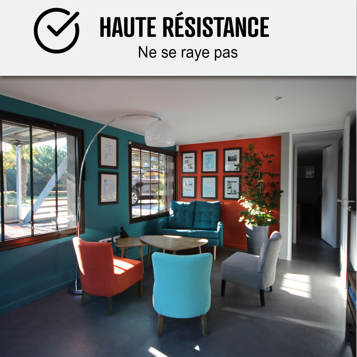 De kits bevatten allemaal ons hoge beschermingsvernis High Protect dat is geformuleerd voor maximale bescherming tegen water en vlekken. Het is UV-bestand. Het is dus perfect geschikt voor buiten, op uw terrassen, trappen, buitenkeukens.