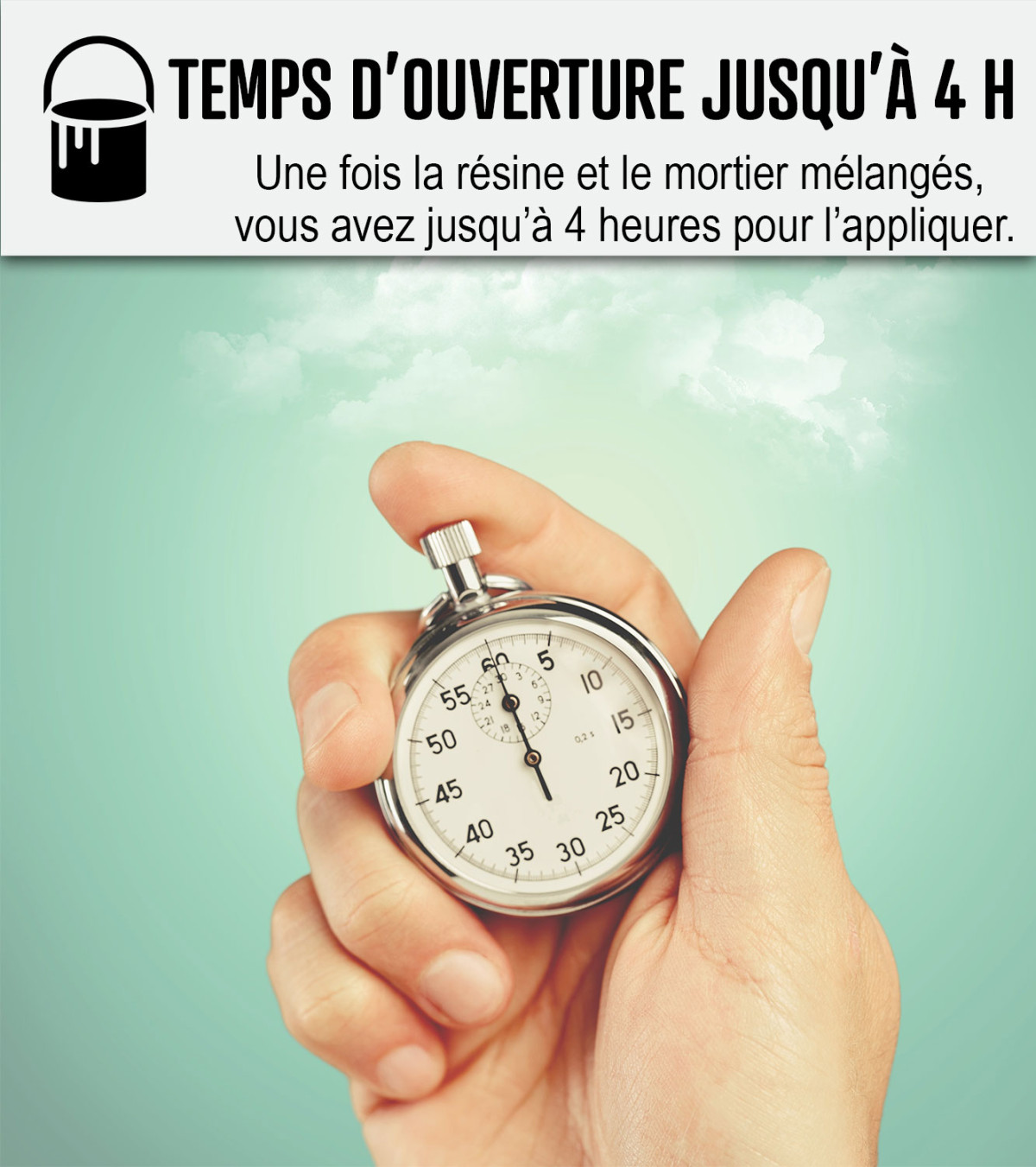 Verwerkingstijd van het mengsel (tijd om aan te brengen): 4 uur. Bereid alleen het mengsel voor de eerste laag voor