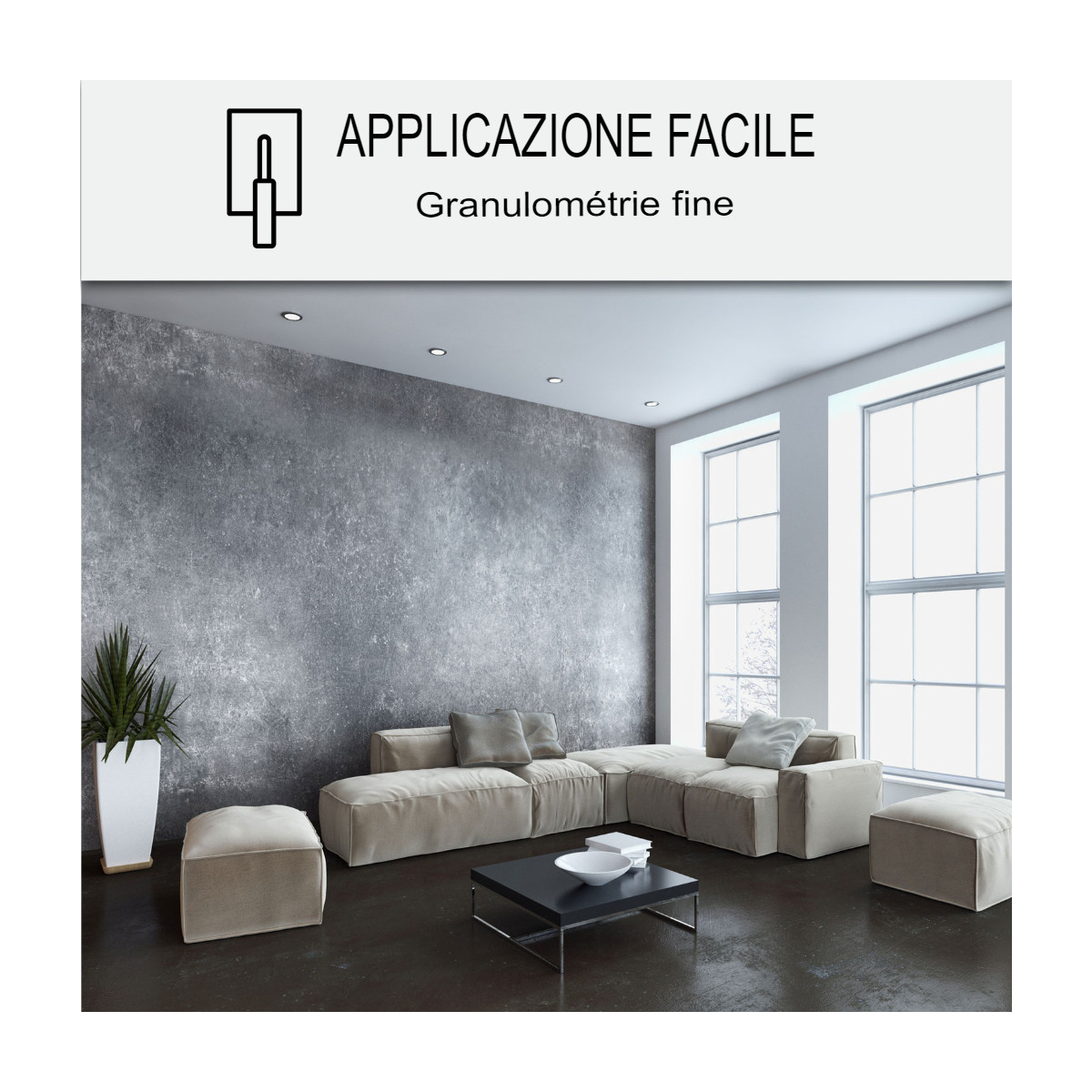 - Pack gepolijst beton (micro mortel fijne granulometrie: poeder + hars + kleurstof)