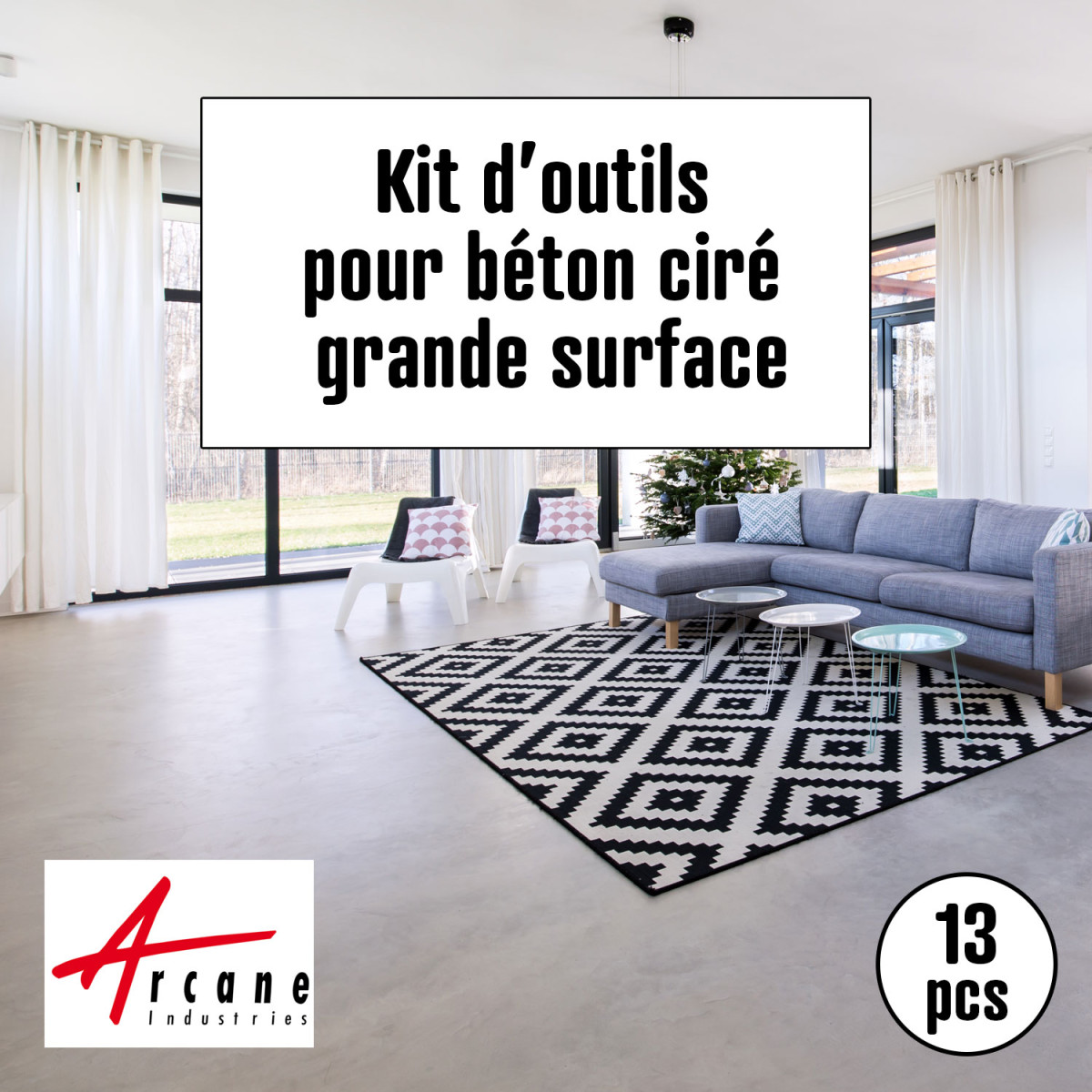 De gereedschapsset voor gepolierd beton op grote oppervlakken bevat de benodigde gereedschappen om gepolierd beton aan te brengen op oppervlakken groter dan 10m².