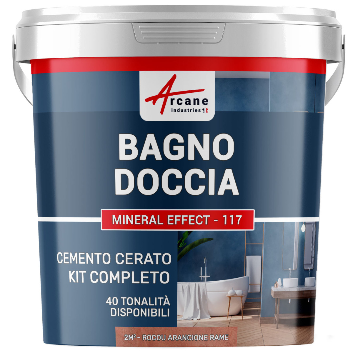 Het gepolijste beton „Mineral Nuances” voor badkamers is een hoogwaardige decoratieve coating, in de massa gekleurd, verkrijgbaar in verschillende warme oranje nuances. Deze mortel, samengesteld uit silica, marmerstof en toevoegingen, wordt gemengd met een witte melkachtige hars en een vloeibare kleurstof. Zijn unieke formulering maakt een gemakkelijke toepassing mogelijk op een grote verscheidenheid aan oppervlakken. Elke kit bevat alle nodige producten om een perfecte hechting en een duurzame afwerking te garanderen. Het is ideaal voor inloopdouches, wanden en vloeren van badkamers.