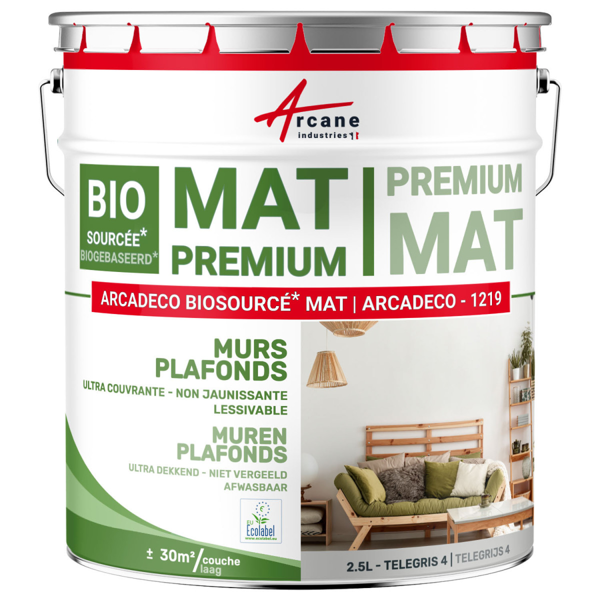 ARCADECO BIOGEBASEERD is een binnenverf ontworpen om esthetiek, prestaties en verantwoorde aankoopkeuze te combineren. Het biedt uniforme dekking, uitstekende weerstand, terwijl het een gezonder interieur garandeert dankzij de lage VOS-emissie.