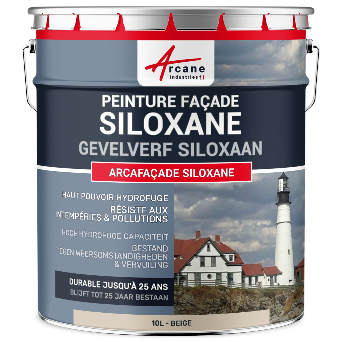 Arcafaçade Siloxane is een waterafstotende professionele verf en decoratief, het is geformuleerd op basis van siloxaan- en acrylharsen, voor een grote weerstand.
