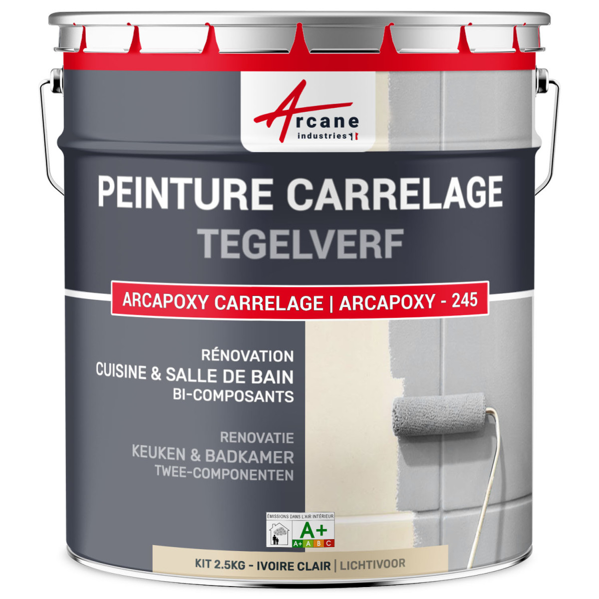 ARCAPOXY - 245 ZWART is veel meer dan een gewone verf. Dankzij zijn formulering op basis van oplosmiddelvrije epoxyhars zorgt het voor een perfecte hechting op gladde oppervlakken zonder noodzaak van een onderlaag. Zijn hoge dekkracht maakt het mogelijk om oude patronen of gekleurde tegels effectief te maskeren, en garandeert een snelle en efficiënte transformatie van binnenruimtes.