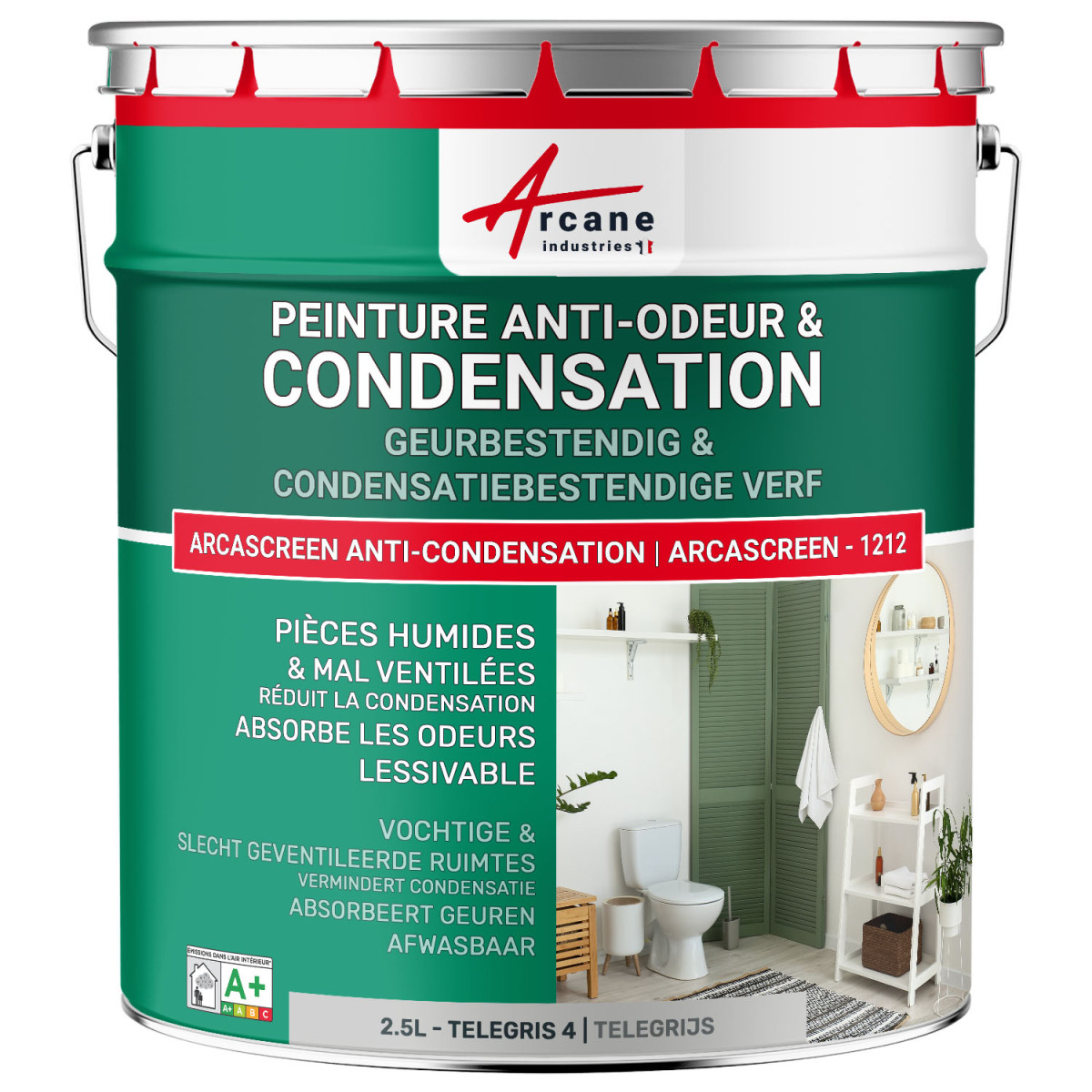 Grijze anti-condensatie, geurwerende verf voor vochtige ruimte: ARCASCREEN - 1212