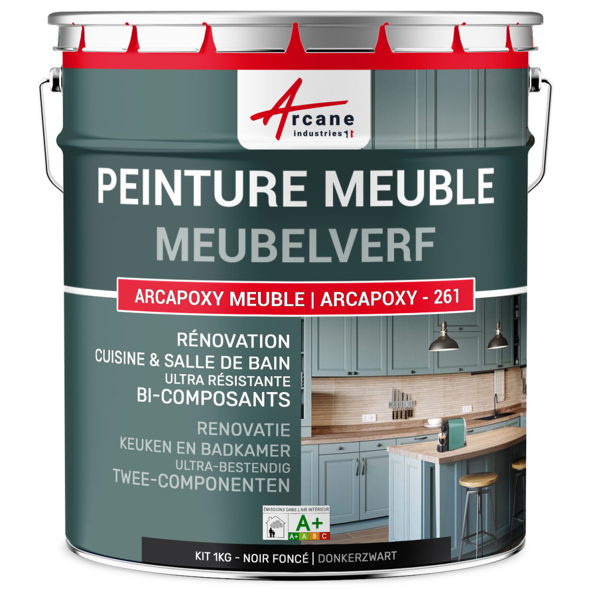 Zwarte verf voor keukenmeubels, badkamer ultra resistent. ARCAPOXY - 261 is de ideale verf aangepast aan uw renovatie-, restyling-, homestagingproject, voor het hergebruik van objecten. Geschikt voor verven op gemellamineerde oppervlakken.