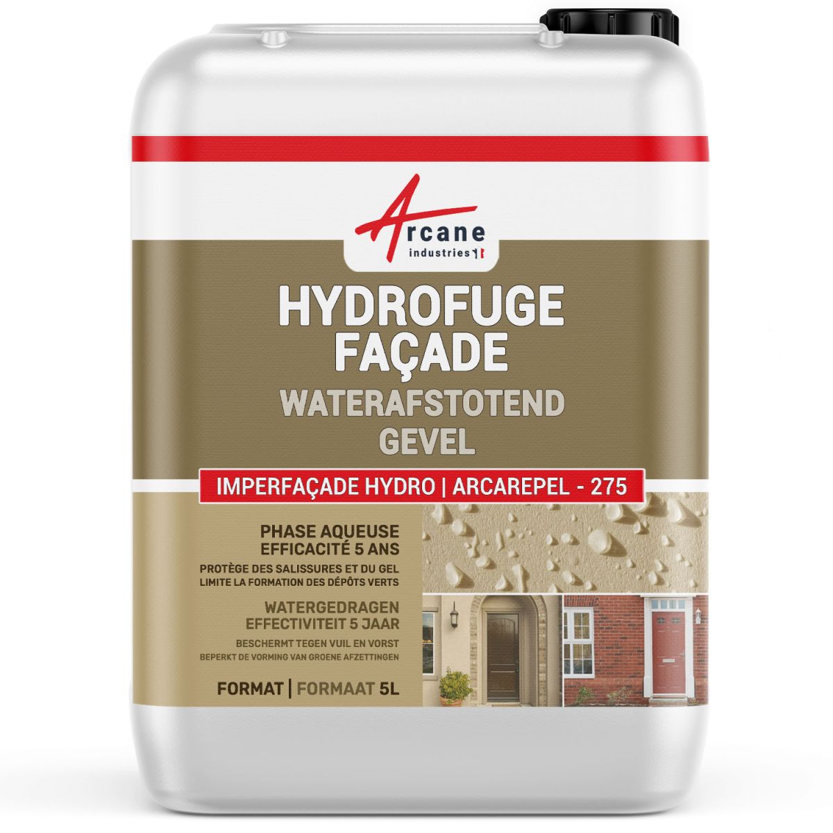 Het is heel eenvoudig om een gevel of een oude muur van steen of pleisterwerk waterdicht te maken met HYDRO IMPERFACADE, de echte oplossing voor uw gevel. Ontwikkeld in onze Franse fabriek Arcane Industries, is deze watergedragen en oplosmiddelvrije hydrofobe formule (ook binnen toepasbaar) speciaal ontworpen om te voldoen aan de eisen van muren en gevels.